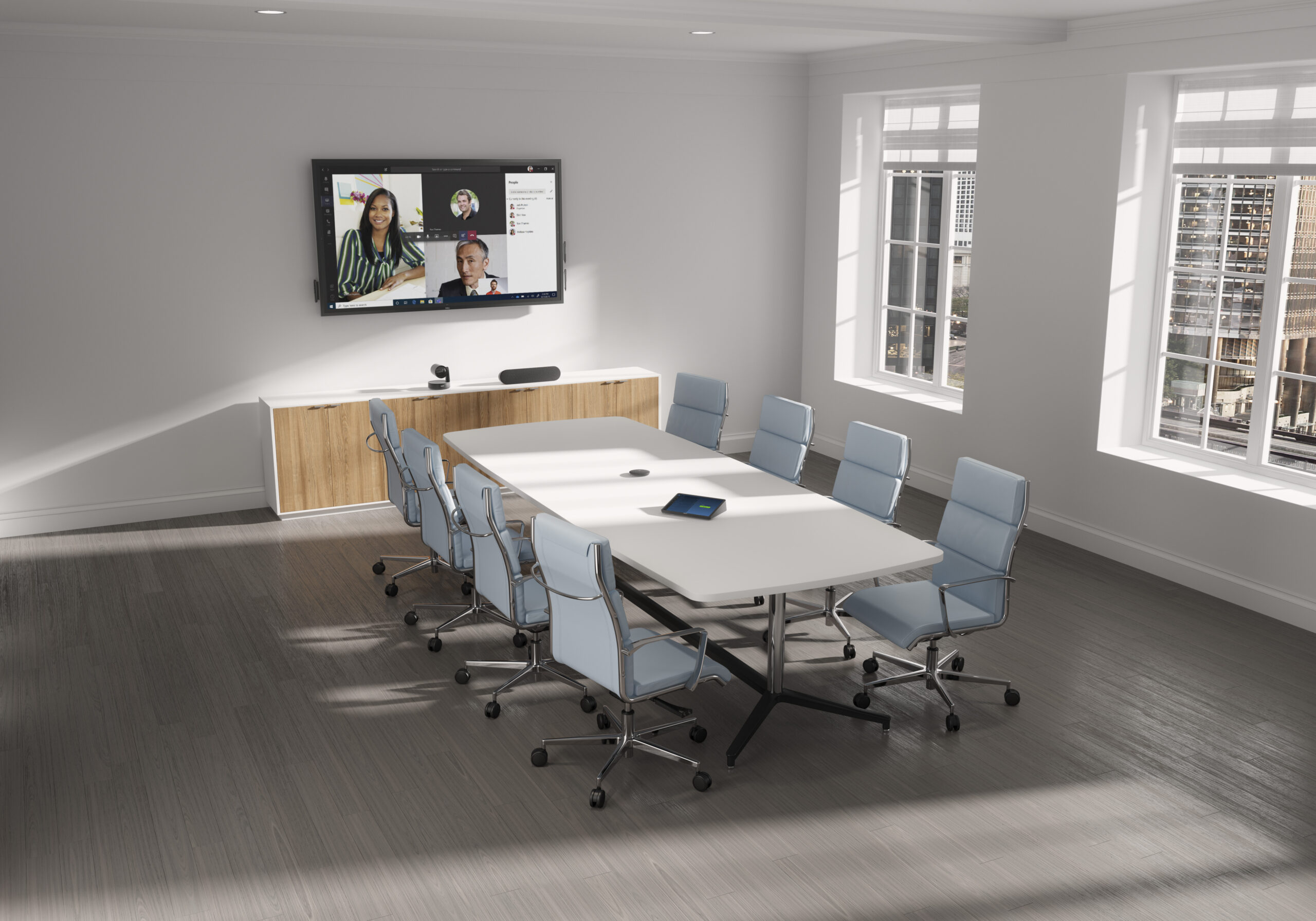 Modern CGI Boardroom with Dell Video Conferencing Display